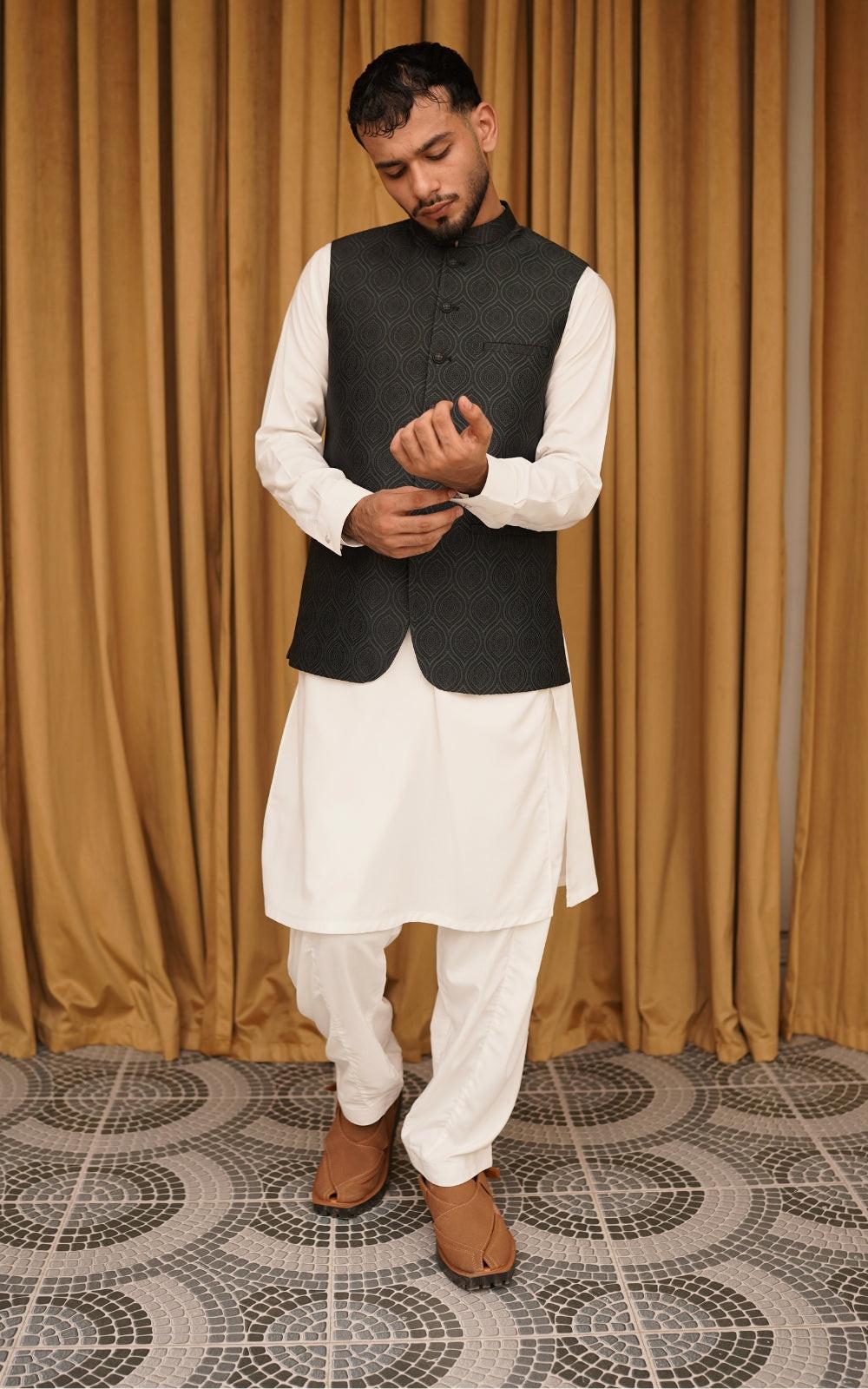 This self-embossed Jamawar waistcoat exudes elegance with its rich texture and luxurious fabric. Perfect for festive occasions, weddings, or formal gatherings, it adds a regal charm to your attire. The detailed weave catches the light beautifully, creating a statement look that stands out effortlessly. Available in sizes 34 to 44, tailored for a graceful and confident fit.