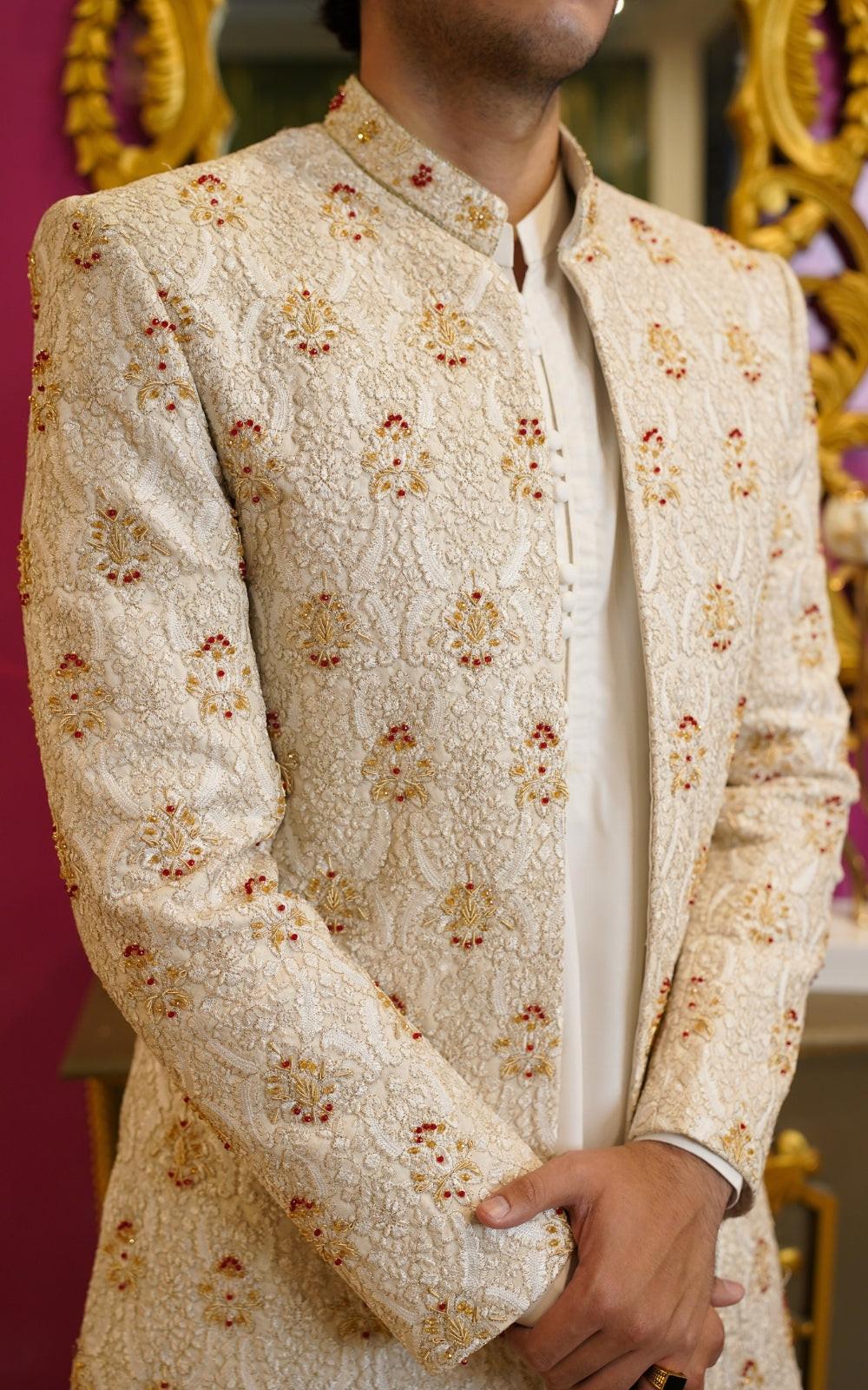 Elevate your style with our Handcrafted Embroidered Open-Price Suit, a stunning blend of traditional artistry and modern refinement. Every stitch is delicately crafted by skilled artisans, offering a flawless, custom-fit tailored just for you. Perfect for weddings or grand celebrations, this premium suit embodies grace, sophistication, and individuality. Fully customized — designed to reflect your personal elegance and timeless charm.