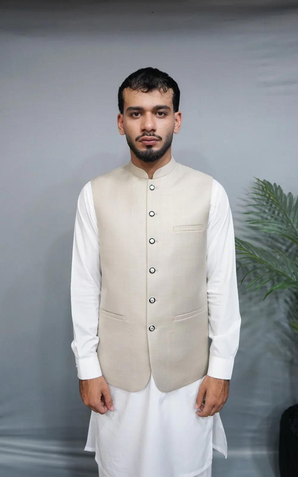 Refined, graceful, and timeless — the Kareem Tropical Suiting Waistcoat is designed to elevate your traditional look with effortless charm. Made from premium tropical suiting fabric, it offers a smooth texture and elegant finish perfect for both festive and formal occasions. Its subtle tone pairs beautifully with any outfit, ensuring a distinguished style every time. Available in sizes 36 to 44.