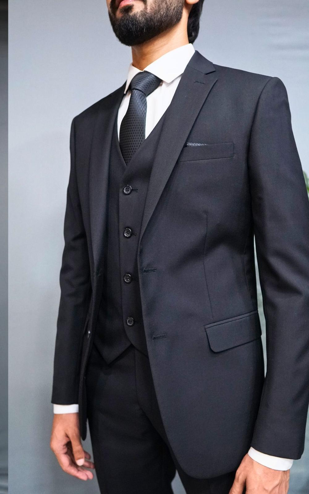 Exude timeless sophistication with this Matte Black 3-Piece Tropical Suit, tailored for a sharp and refined look. Crafted from premium tropical suiting fabric, it offers a perfect balance of comfort and durability. Ideal for formal gatherings or festive occasions, its sleek texture and flawless cut define modern elegance. A wardrobe essential for those who appreciate style with substance.