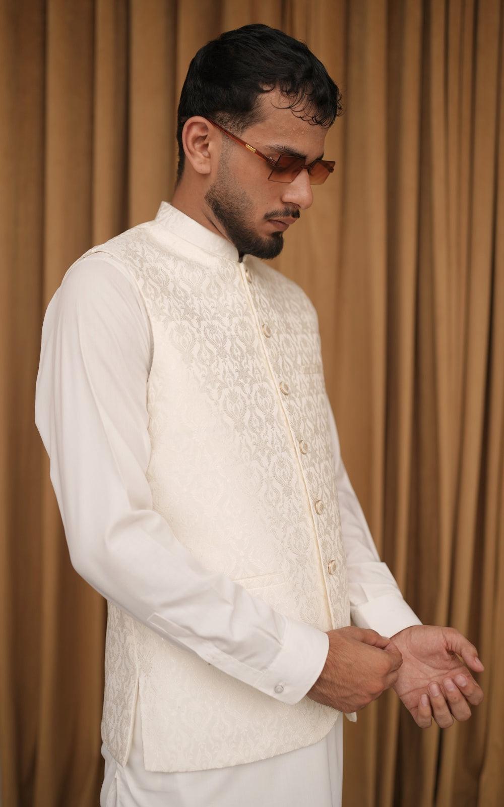 This self-embossed Jamawar waistcoat brings a royal touch to your look. Its intricate texture and rich fabric make it ideal for weddings, festive gatherings, or refined casual wear. Thoughtfully tailored in sizes 36 to 44, it ensures a sharp and comfortable fit. A perfect blend of tradition and modern charm, this waistcoat adds effortless grace to every occasion and every wardrobe.