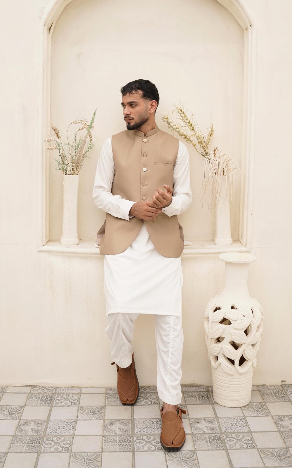 This skin-toned tropical suiting waistcoat adds a refined, elegant touch to your wardrobe. Its smooth, breathable fabric ensures comfort while maintaining a sharp and classy look for any occasion. Perfect for weddings, festive wear, or formal gatherings, this versatile piece complements both light and dark outfits beautifully. Available in sizes 36 to 44 for a flawless tailored fit.
